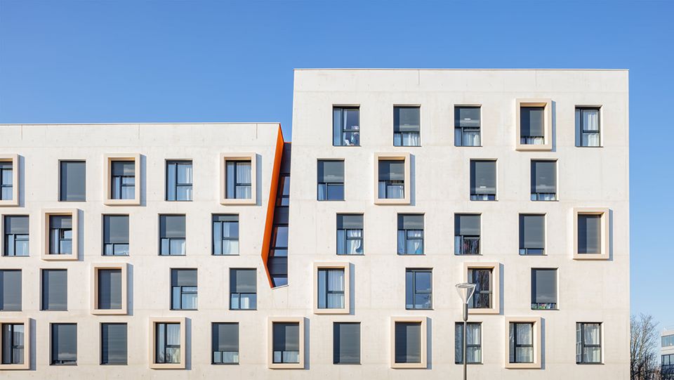 Inspirée par l’image d’un rocher en transformation, la résidence étudiante s’affirme comme un monolithe sculpté par le temps, ancré dans son site et subtilement travaillé par les forces de l’érosion. Ce parti architectural donne naissance à un bâtiment fort, expressif et évolutif.