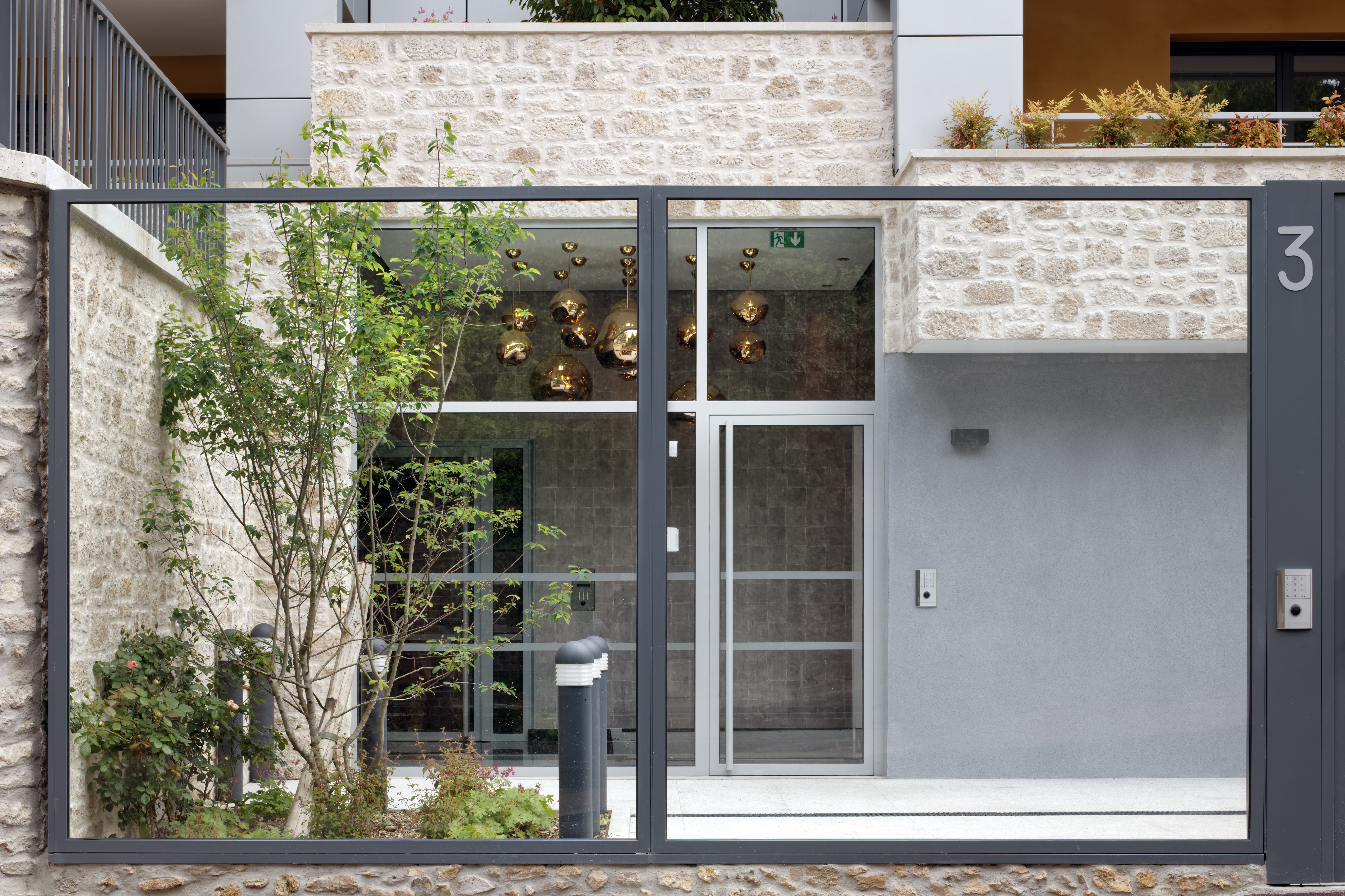 Situé à la frontière des quartiers "Binelles" et "Europe" à Sèvres, le projet s’inscrit dans un tissu résidentiel de maisons individuelles entourées de jardins. Afin de préserver cette identité et d'assurer une transition harmonieuse avec le contexte existant, le projet est conçu comme deux « grandes maisons » reliées par une circulation verticale centrale. Cette implantation permet de s’adapter à la forte déclivité du terrain tout en offrant une lecture fragmentée et intégrée du bâtiment dans le paysage urbain.