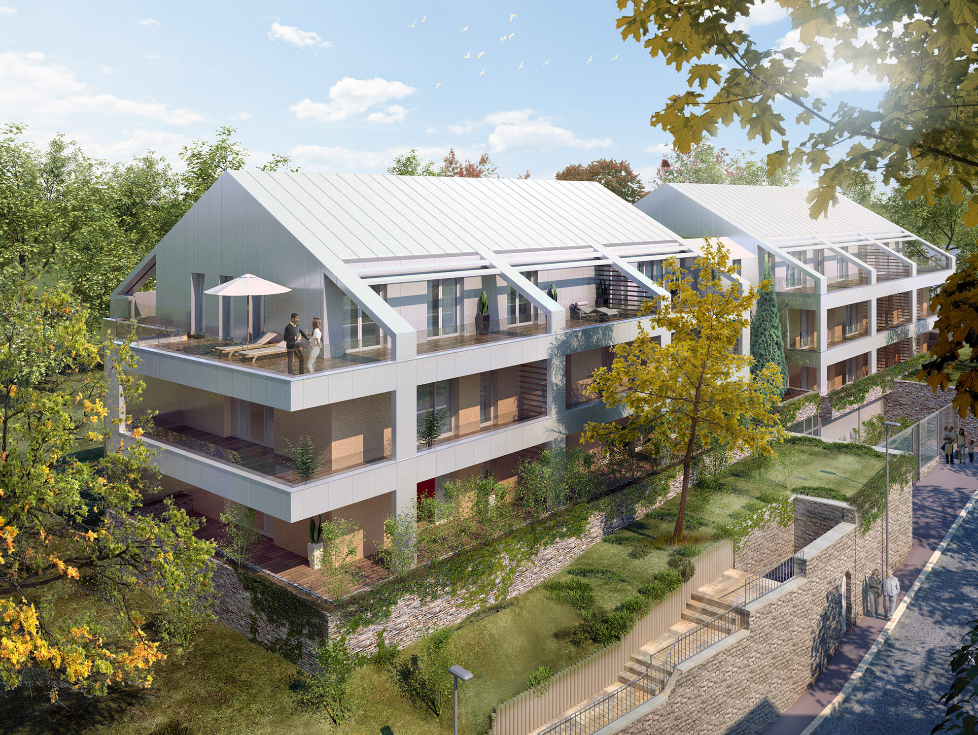 Une attention particulière est portée au paysage : les arbres existants sont en partie conservés et enrichis de nouvelles plantations, favorisant l’intégration du projet dans son environnement naturel et la création d’un cadre de vie agréable et durable.